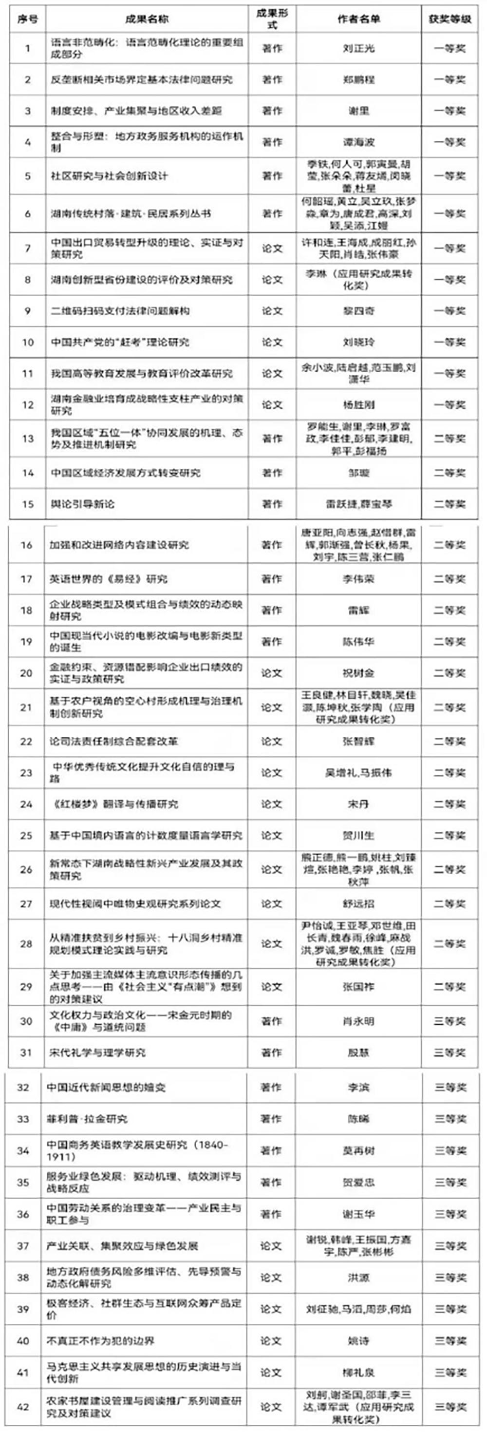近日,湖南省社会科学成果评审委员会办公室组织的湖南省社会科学奖评选结果公布。无码动画