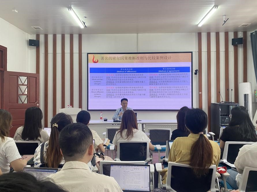 讲座伊始,和经纬老师从个案分析的特征进行切入,并通过对密尔因果推断的比较解释和对复合型比较案例匹配策略的阐述,引出案例研究的典型模式-四宫格对比,并提出案例研究的三个层次:单案例分析、多案例论证和多案例比较归因。