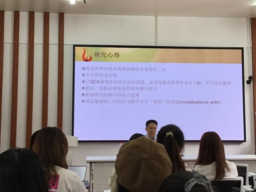 在此基础上,和经纬老师总结了QCA方法的研究心得:现实世界中政策试点选择的路径并非简单二分,要想让QCA成为有效的方法论武器就必须对真实世界有充分了解,把演绎和归纳巧妙结合起来,不仅要有效运用公开资料外,还应当抓住一切机会和实务界朋友聊天学习。他还强调理论敏感度的重要性,鼓励大家通过阅读归纳出文献中并不“显性”的争论。