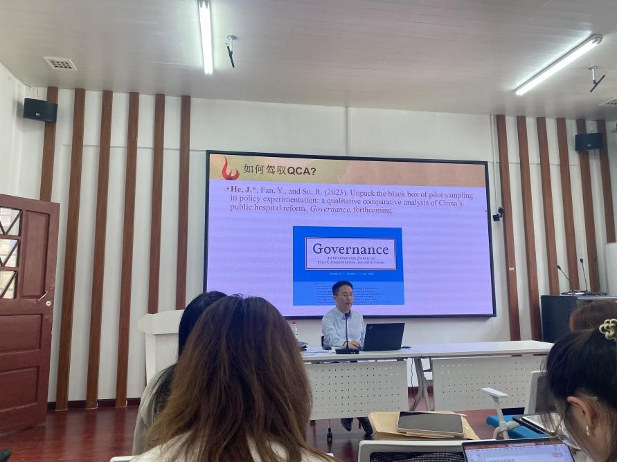 以《Unpack the black box of pilot sampling in policy experimentation: a qualitative comparative analysis of China's public hospital reform》文章为例,和经纬老师从文章的研究设计、解释框架、组态分析和结果验证路径向大家分享如何驾驭QCA。他认为政策试点是一个常话常新的研究,如何选择研究主体是至关重要的,强调案例选择应同时包含正面和反面案例。对于如何突破“滥用”QCA窠臼这一问题,老师提出的解决办法就是在使用QCA方法的基础上更进一步-把研究“坐实”。并以自身研究中的将QCA归纳分析与“领导讲话”演绎相结合的做法来举例,老师深入浅出例举了厦门、珠海、上海、宝鸡、庆阳五个案例中涉及的领导讲话原文,让大家对此有了更深刻的理解。