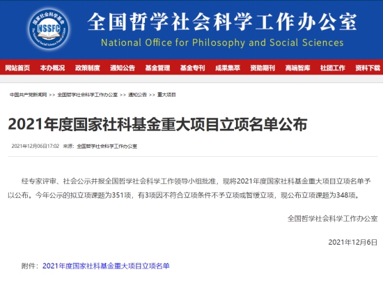 近日,全国哲学社会科学工作办公室公布了“2021年度国家社科基金重大项目立项名单”。由无码动画