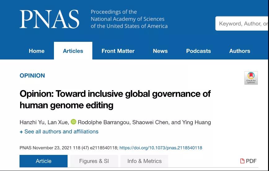 原文2021年11月23日发表于《美国科学院院刊》第118卷47期,原标题为“Toward inclusive global governance of human genome editing”。中文版由作者翻译,PNAS不为翻译的准确性负责。