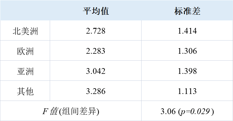 附表3 不同地区的受访者对Q6的态度报告