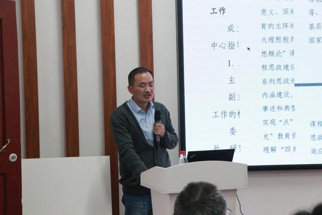 公共政策与社会治理研究所所长胡赛全引述“思政如盐,化于无形,融入课程”,从四个自信、民生国情、精神传承、责任担当等四个方面介绍了本所教师开展课程思政的探索实践。