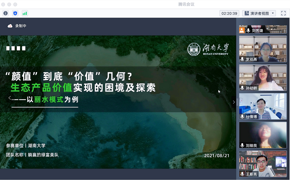 四位队员在刘细良老师的无私付出和专业指导下,聚焦浙江省丽水市生态产品价值实现的发展历程,通过前期的实地调研访谈,结合相关的理论论证,深入探究“生态产品价值实现”的有效路径。案例文本和分析报告也经过多次细致修改,不断打磨,精益求精。决赛环节,案例分析报告和四位同学的现场表现获得专家评委一致好评。