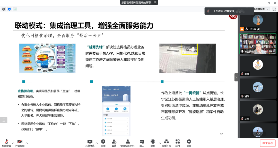 黄璜老师的精彩分享引发参会同学热烈讨论,吴高鹏、丁恒、晏稳、文宇和张建凤五位同学分别就“数字技术赋权公民实现数字化协同”、“政府与平台公司间的关系”、“特色产业部门数据治理协同”、“弥合城乡数字治理差异”以及“数字协同治理中的绩效考核”等若干问题进行了提问,黄璜老师一一予以耐心细致的解答。