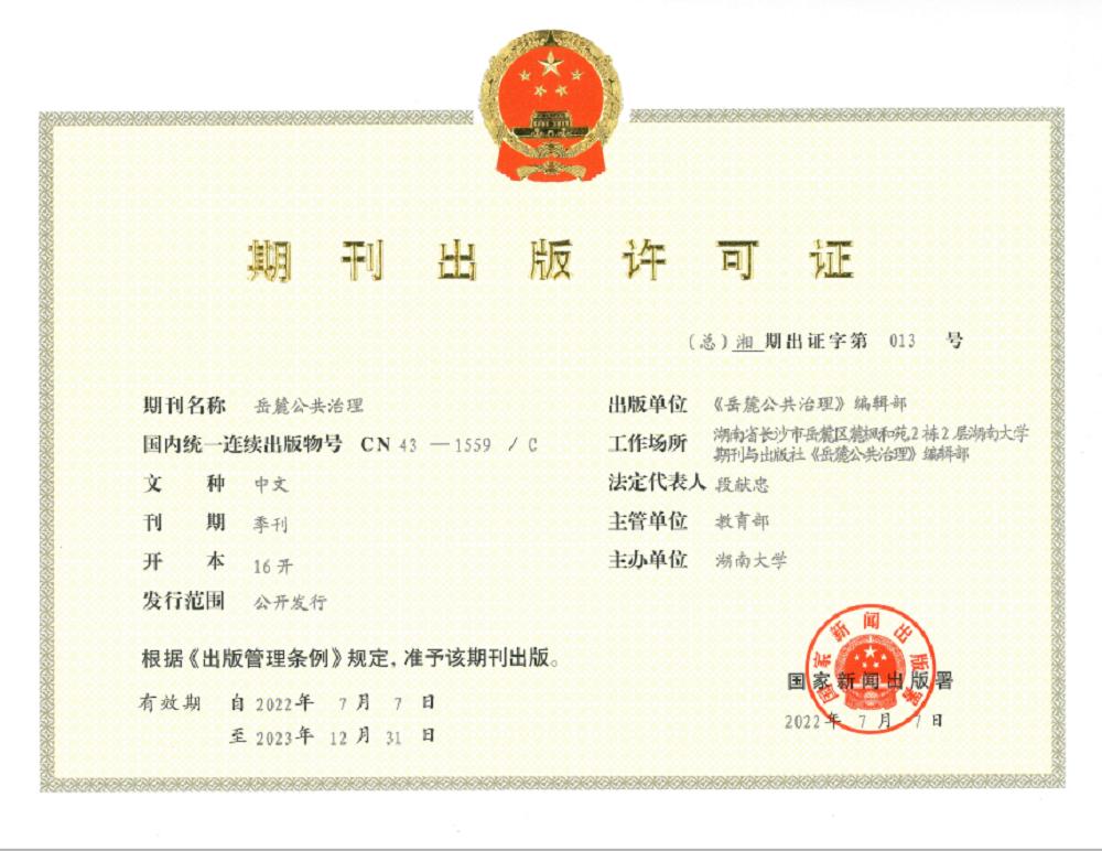 《岳麓公共治理》将坚持正确的舆论导向和办刊方向,刊载公共治理的理论成果和实践经验,突出实证研究特色,服务公共治理理论创新和国家治理现代化建设。