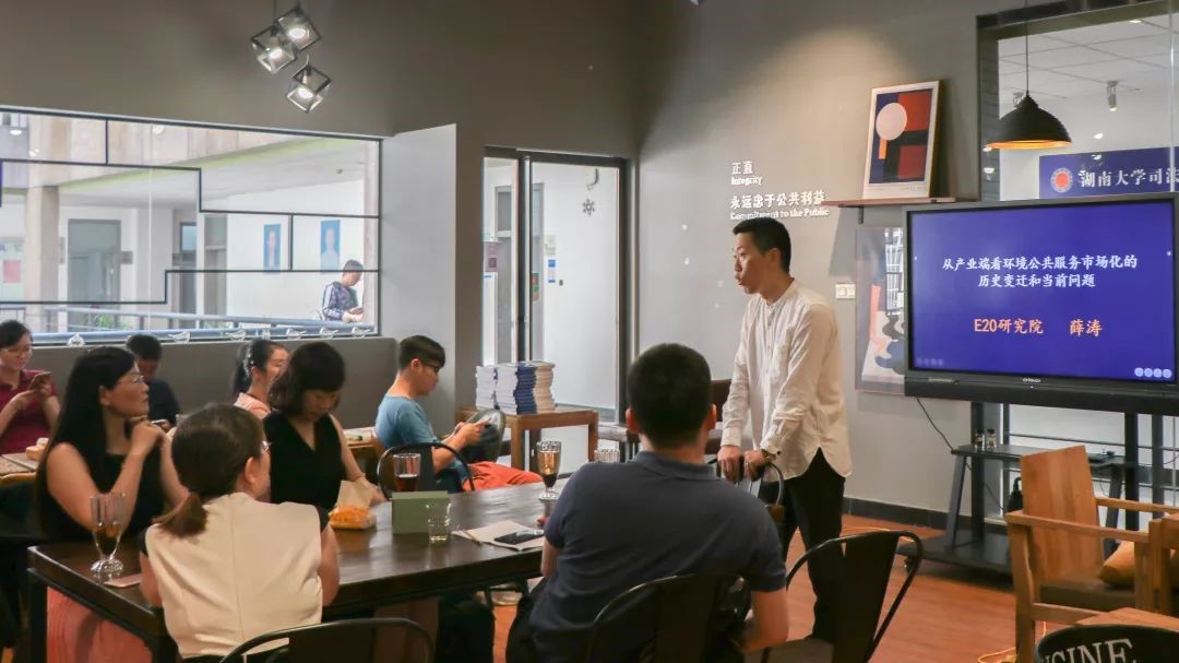 MPA学术午餐会在法学楼咖啡厅举行。本次会议交流的主题为“从产业端看环境公共服务市场化的历史变迁和社会问题”,由E20研究院执行院长薛涛做主题分享,左健教授主持,李连友院长、E20环境平台高级合伙人汤浩以及公管学院多位老师参与交流。