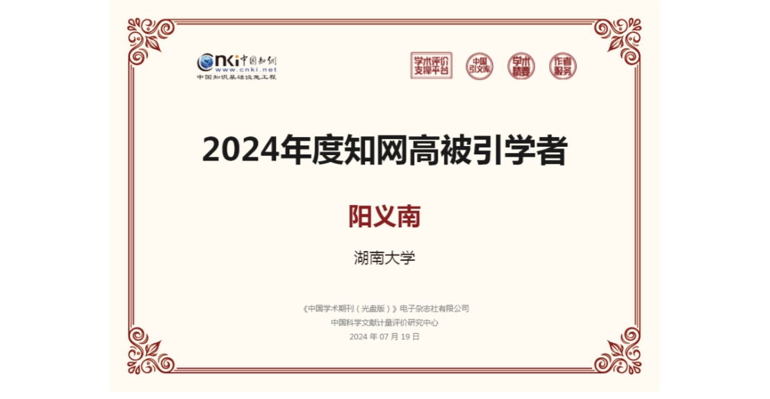 阳义南教授成功入选“2024年度知网高被引学者”。阳义南教授主要从事养老保险与金融、延迟退休、银发经济等老年经济学与政策研究。近十年内,他的30篇论文被《学术精要数据库》收录,其中28篇论文的PCSI指数大于1.65,12篇论文为高影响力论文,总PCSI指数达到210.19,位列保险与社会保障学科前1%。