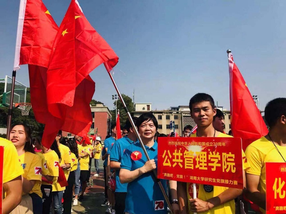 参赛选手们整装待发,作为第一棒选手的付蓉芬老师在起跑哨声响起时,首个冲出起跑线,保持着平稳矫健的步伐在东方红广场前的五星红旗交给杜倩博老师继续传递。两位老师的激情也点燃了全院20名参赛队员,研究生选手斗志昂扬,越战越勇,手持国旗、党旗,朝着麓山顶端奋力奔跑。第十九棒选手在“青春告白祖国”环节中,代表参赛队员写下了对祖国的深情告白:公管学子齐力奋进新时代,祖国华诞同心祝福永繁盛!最终在大家齐心合力之下,取得了第四名的好成绩。登顶成功之后,无码动画