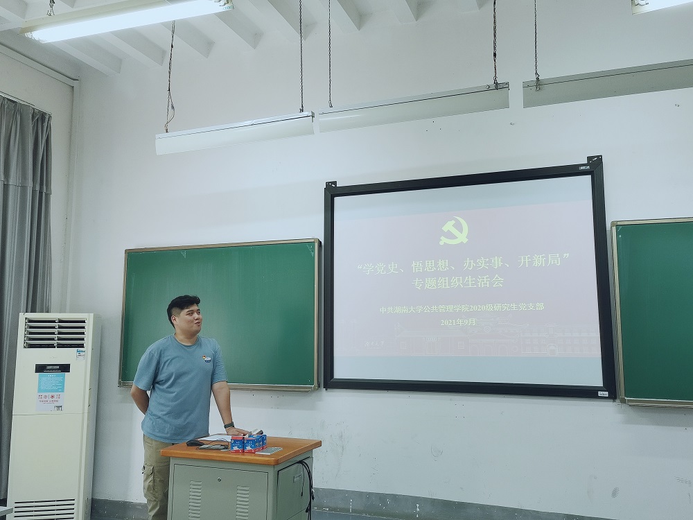 2020级研究生党支部于南校区东楼214室顺利召开“学党史、悟思想、办实事、开新局”专题组织生活会,学院党委书记付蓉芬列席会议并作点评发言。本次组织生活会由2020级研究生党支部书记王浩主持,支部全体党员参加。