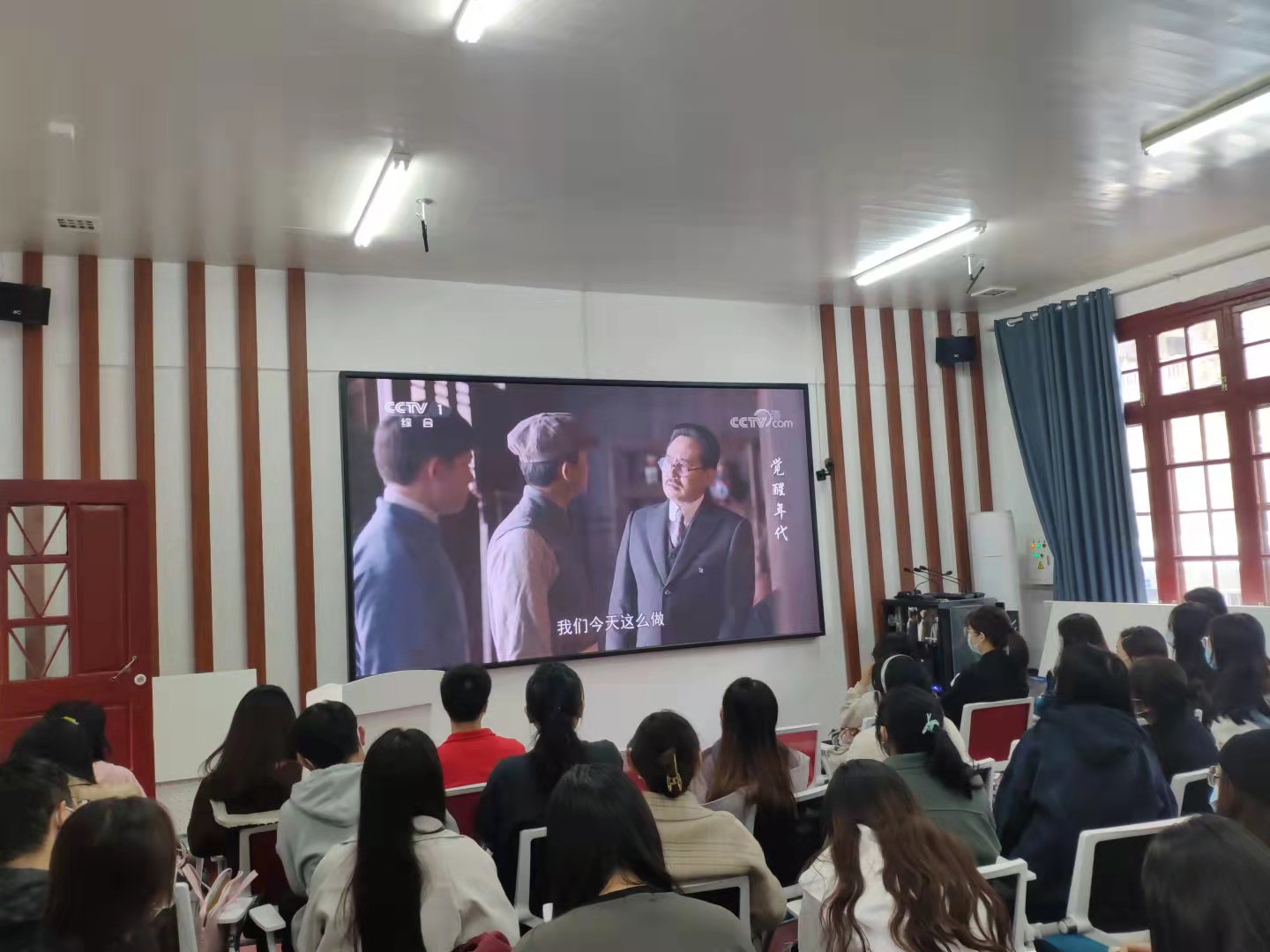 党委组织师生党员在院楼221集中观看红色历史剧《觉醒年代》(节选),在观影活动中,明晰共产党人的初心使命,了解党的百年奋斗历程,学习伟大的建党精神。