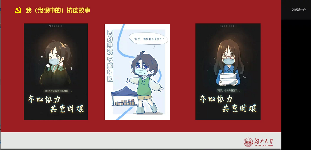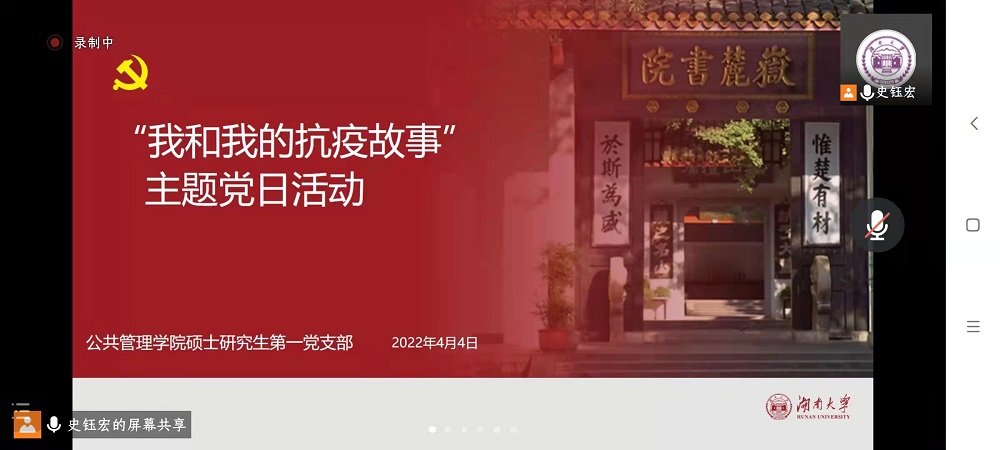 硕士研究生第一党支部开展“我和我的抗疫故事”线上主题党日活动。活动由支部书记史钰宏主持,支部全体党员、积极分子参加。