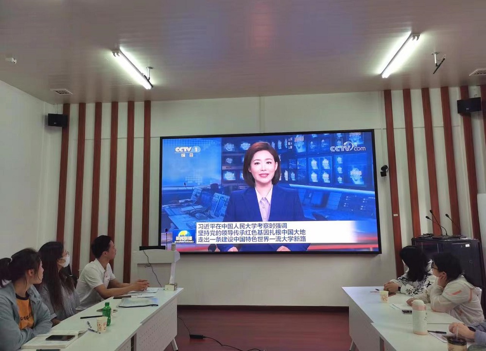 5月7日,学院硕士研究生第二党支部在221室开展习近平总书记考察中国人民大学重要讲话精神专题学习,支部书记肖苏华主持学习,全体支部党员、入党积极分子参加。