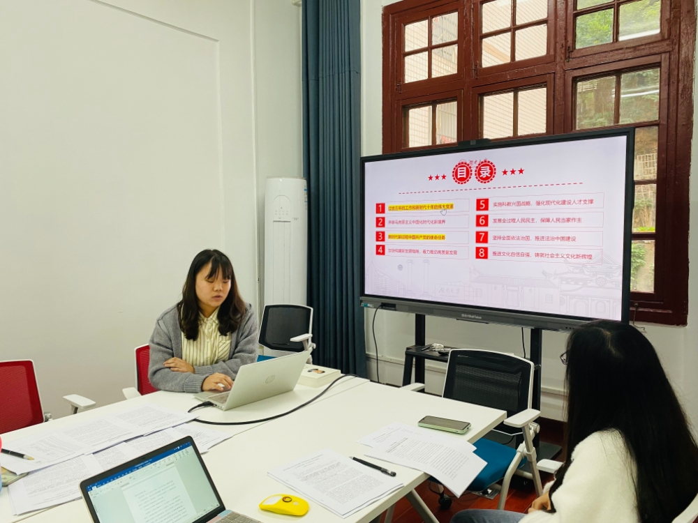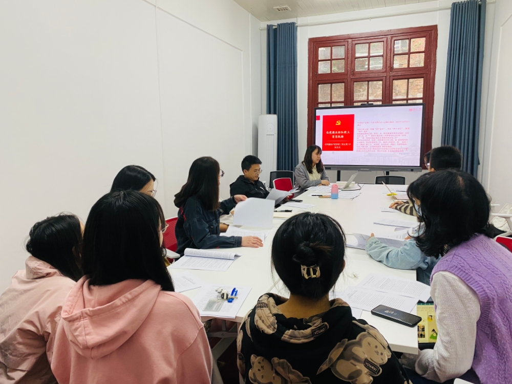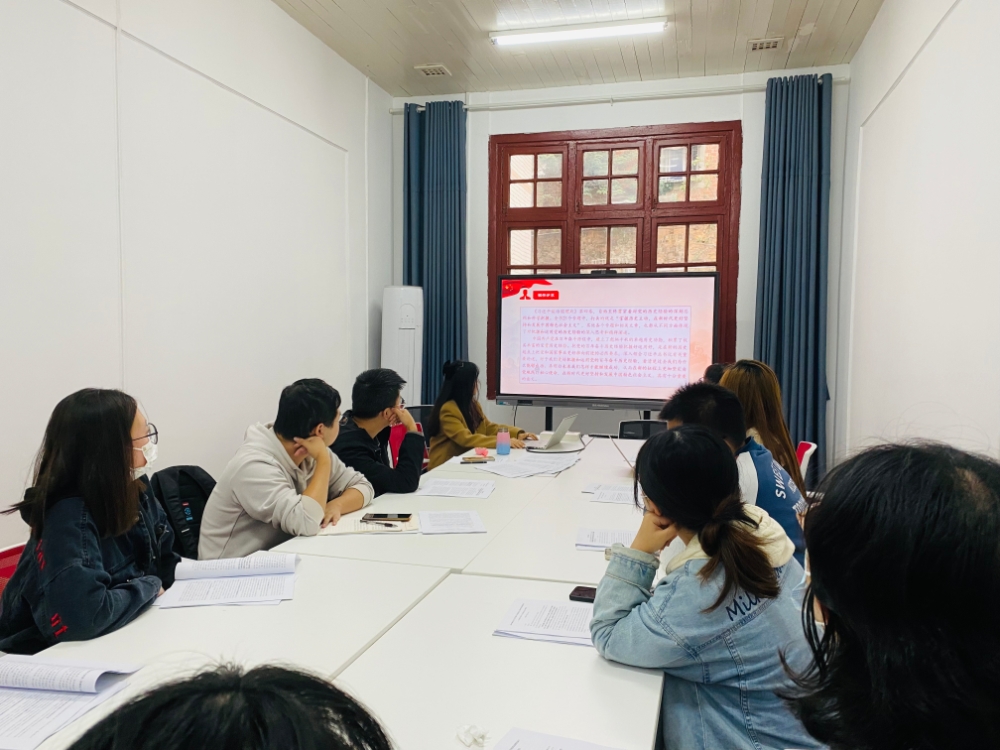 硕士研究生第四党支部在学院214室开展本月主题党日活动暨中国共产党第二十次全国代表大会精神专题学习,会议由支部书记罗欢主持。