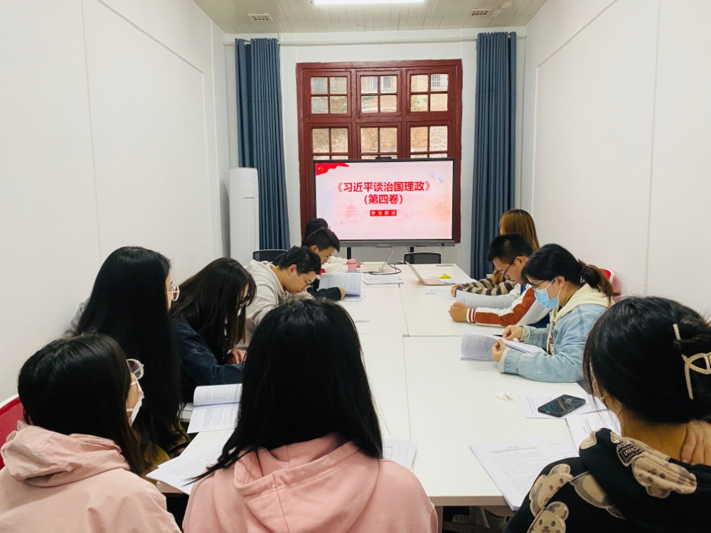 活动第一环节,支部组织委员夏根为支部成员讲解了《习近平谈治国理政》(第四卷)的主要内容、全书脉络,宣传委员王莉珍带领大家进行了专题学习,支部成员探讨交流了学习心得。