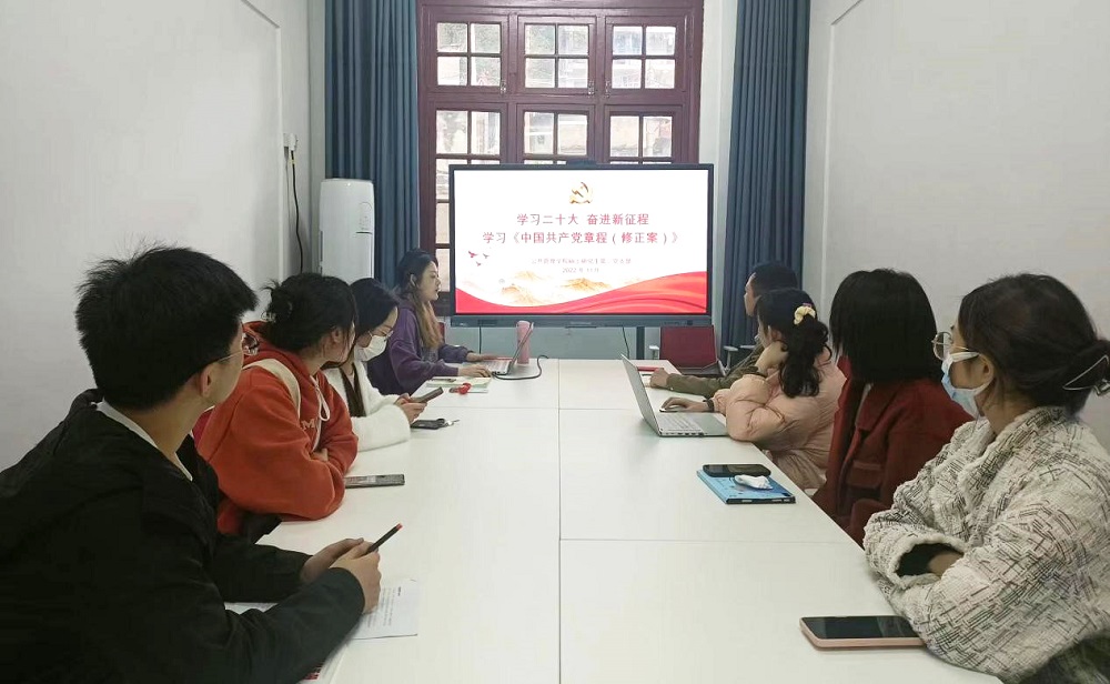 硕士研究生第二党支部于院楼220室开展党的二十大精神宣讲专题组织生活会暨“学习二十大 奋进新征程”主题党日活动,支部书记张佳乐主持会议,支部全体党员参加。