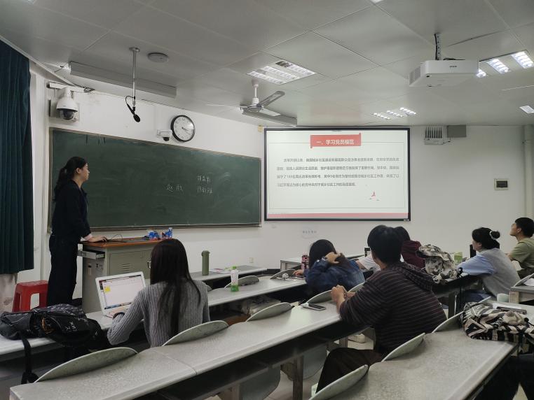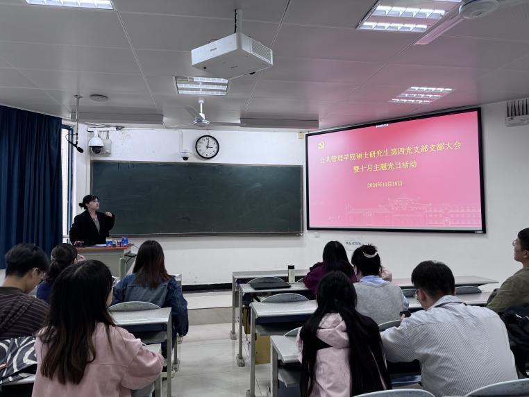 硕士研究生第四党支部在水教206召开支部大会暨10月主题党日活动,活动由支部书记何思缤主持。