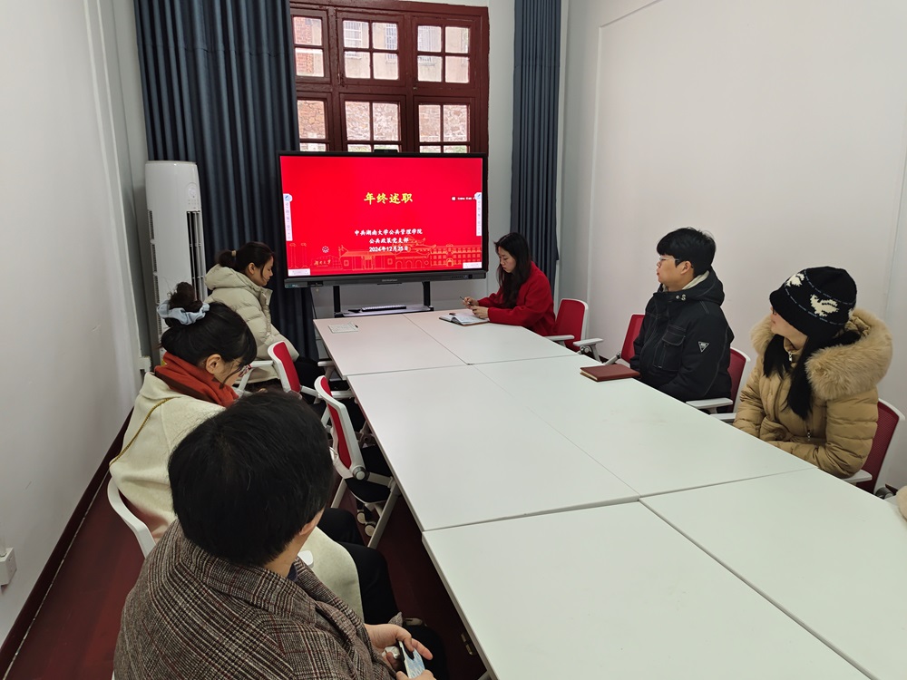 会议开始,程聪慧同志向支部进行年终述职,她回顾了支部2024年取得的成就和发挥的堡垒作用,尤其是在政治理论学习、“三会一课”制度落实、主题党日活开展、助力学院中心工作等方面所做的工作。之后,她就2025年的工作安排进行谋划,并向同志们征集党日活动开展的意见。