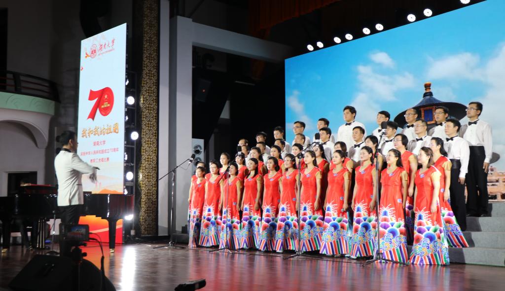 9月27日晚,无码动画 庆祝中华人民共和国成立70周年“我和我的祖国”教职工合唱比赛在大礼堂举行,各部门教职工用最嘹亮的歌声和最浓厚的爱国情怀,追忆中华民族从站起来到富起来、强起来的历史性飞跃,共同献礼新中国的七十华诞。