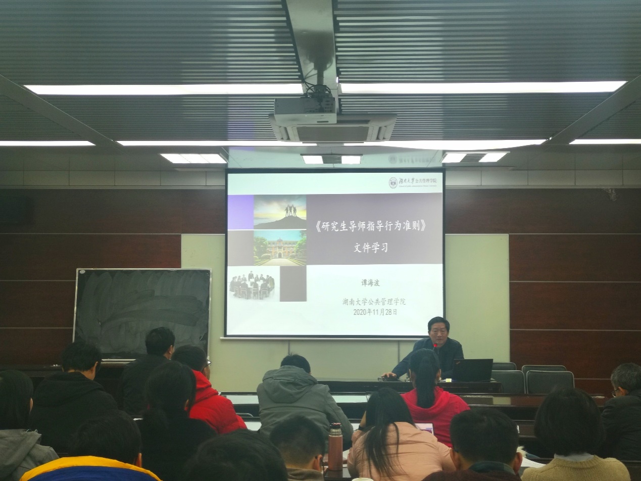 全面落实研究生导师立德树人职责实施办法》专题学习暨2020年导师培训活动。