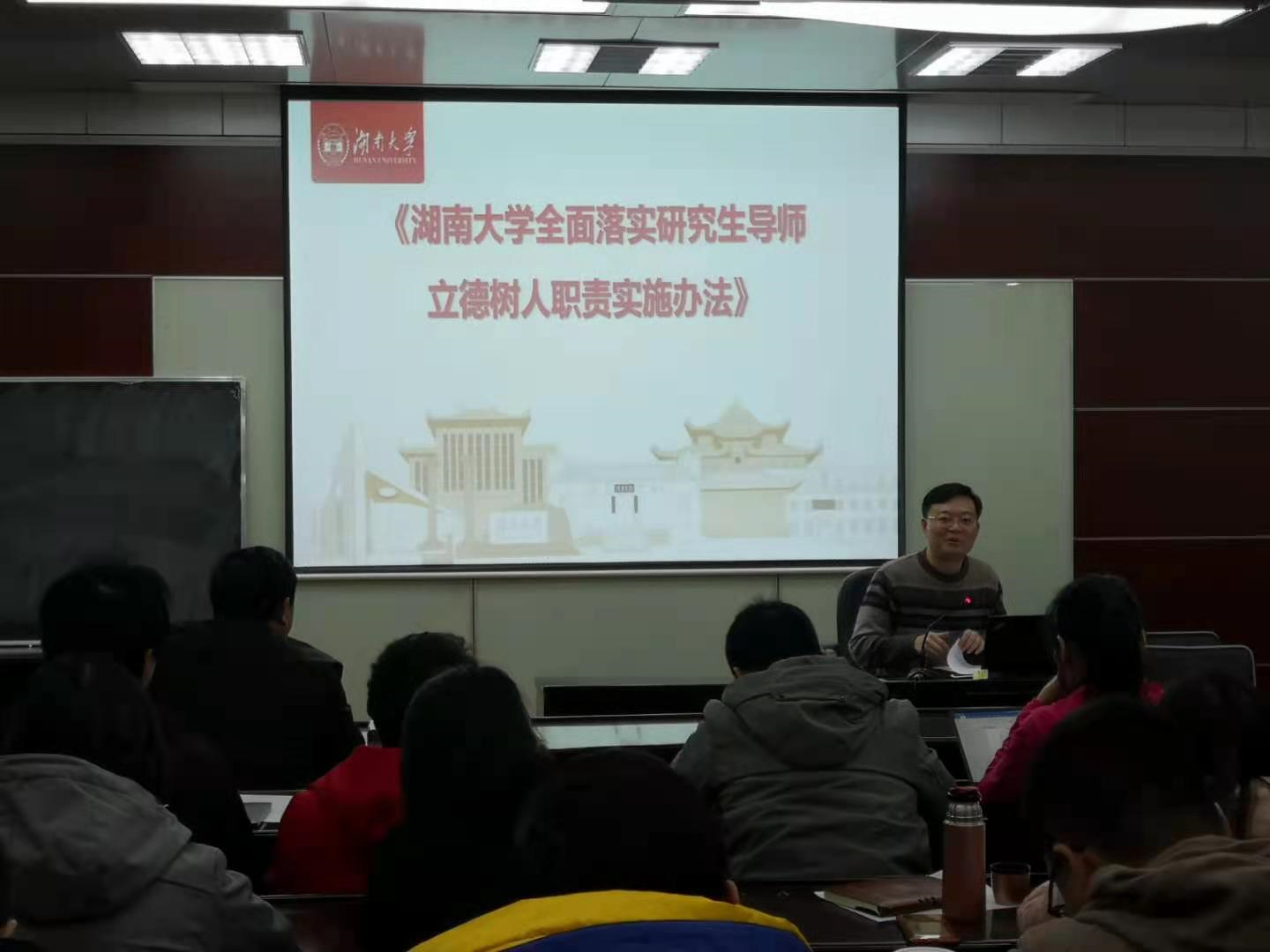 全面落实研究生导师立德树人职责实施办法》,解释了研究生导师立德树人的七项职责及履责要求,解读了研究生导师七项禁行行为,传达了研究生导师立德树人考核评价办法。会上,与会老师相互交流了学习感想。