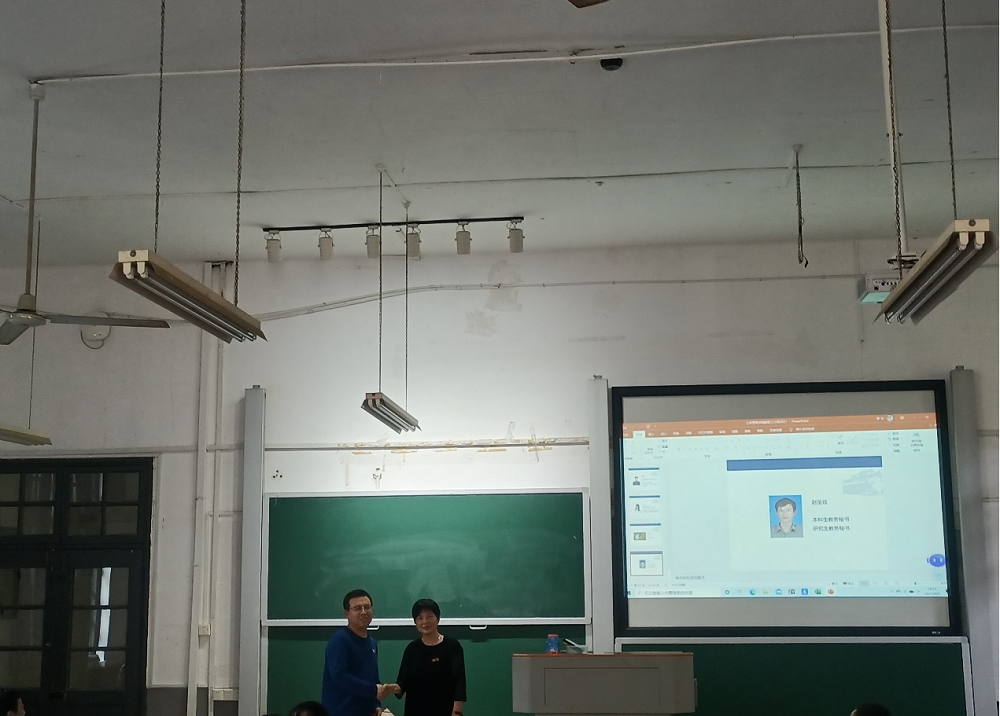 图:杜倩博介绍学院学生工作和管理规定