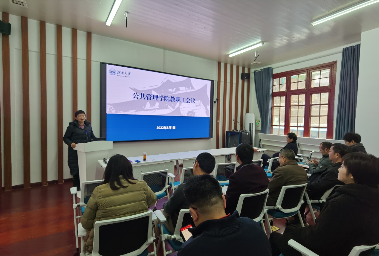 3月1日下午,学院在221会议室召开新学期第一次全院教职工会议,会议由学院党委书记付蓉芬主持。