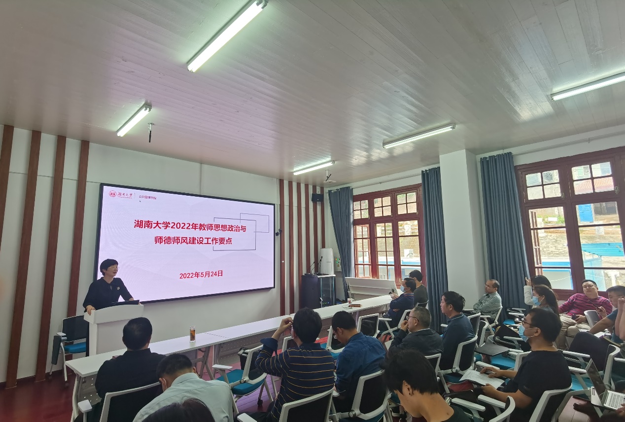 5月24日,无码动画 召开全体教职工会议,深入学习《无码动画 2022年教师思想政治与师德师风建设工作要点》精神,文件由党委书记付蓉芬领学。