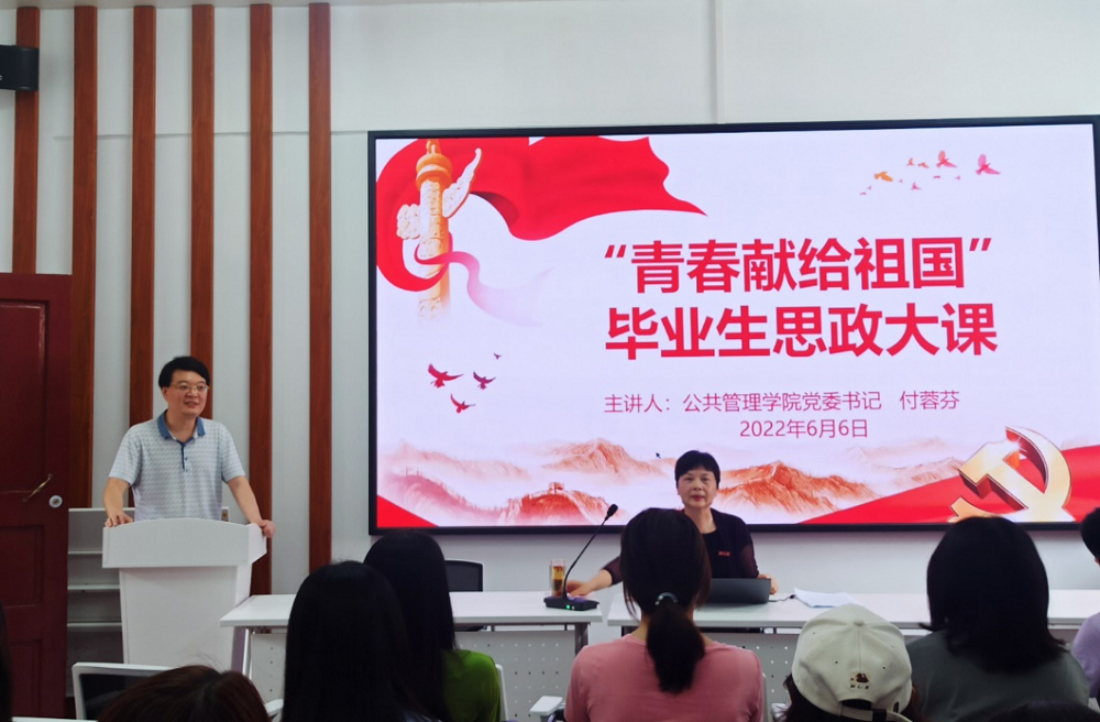 于6月6日下午在院楼221举行“青春献给祖国”毕业生思政大课。此次思政大课由院党委书记付蓉芬主讲,党委副书记杜倩博主持,本研全体毕业生党员参加学习。