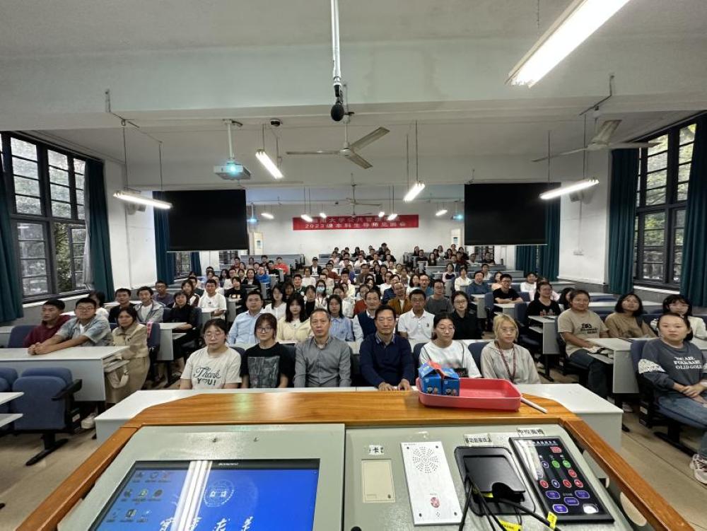 举行第五次新生导师见面会,2023级全体同学、三十余位导师和院领导到场参会,会议由辅导员胡春晖老师主持。