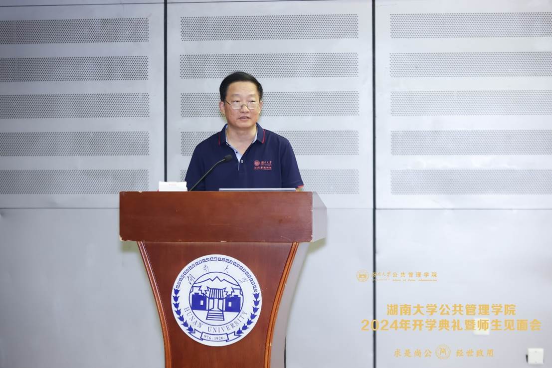 院长李连友教授代表全院师生对2024届全体新生表示欢迎和热烈祝贺,鼓励学子们在信息爆炸的时代,坚定内心、笃实前行,不断增强自己的应变能力,并提出几点期望:一是要保持一颗宁静心,以理想信念引领人生航向;二是要保持一颗进取心,以真才实学筑牢探索之基;三是要保持一颗好奇心,以多元探索锤炼综合素质;四是要保持一颗愉悦心,以健康的身心为未来蓄能。李院长期望全体新生在新时代新起点上肩负起时代赋予的重任,满帆启航,乘风破浪,争做堪当民族复兴大任的时代新人。