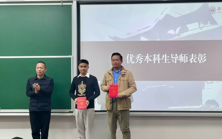 最后,学院对优秀本科生导师——任皓、刘盼两位老师进行表彰,由学院党委书记宋杰颁发荣誉证书。作为优秀导师代表,刘盼老师结合心理学提出挖掘学生的独特性与多样性,在参与中挖掘学生优势,鼓励学生“不被定义,成为最好的自己”。