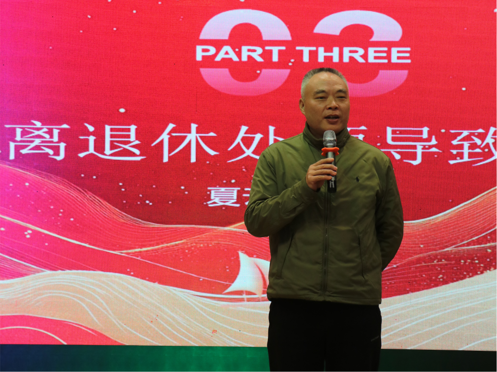 随后,离退休处党委书记夏云超发言。夏云超书记代表学校对荣休教师表达了由衷的感谢和崇高的敬意,并勉励在职教师要以荣休教师为榜样,为学院的未来发展注入新的动力。