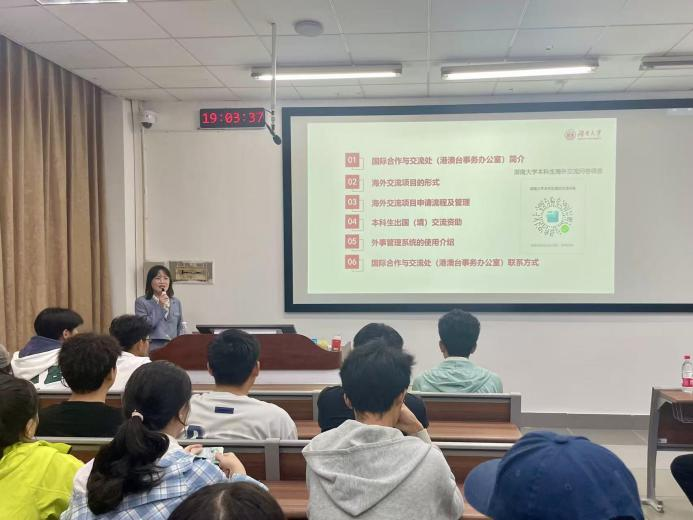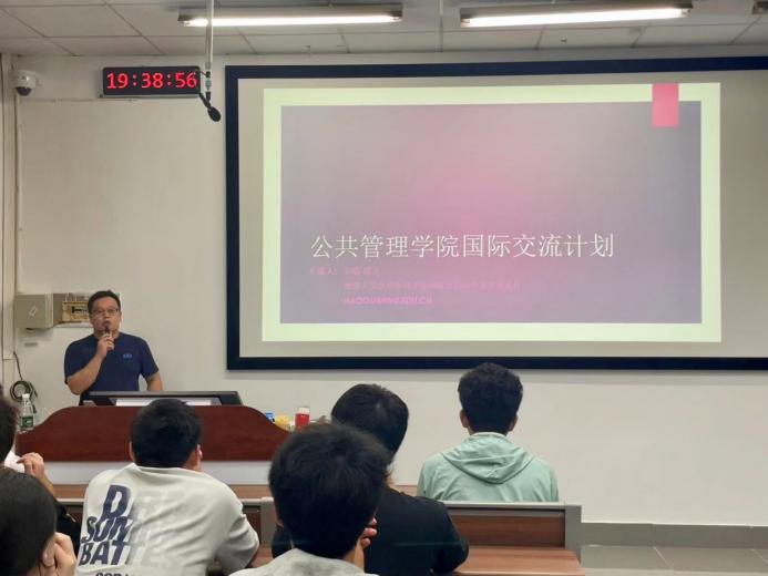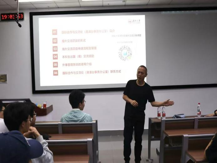 首先,学校国际合作处单姣老师依次讲解了学校国际合作处的工作职能;海外交流的项目类型、海外交流项目的管理与资助办法等。单老师的讲解条理清晰、重点突出,让同学们对学校为学生海外交流提供的支持政策有了全面认识。