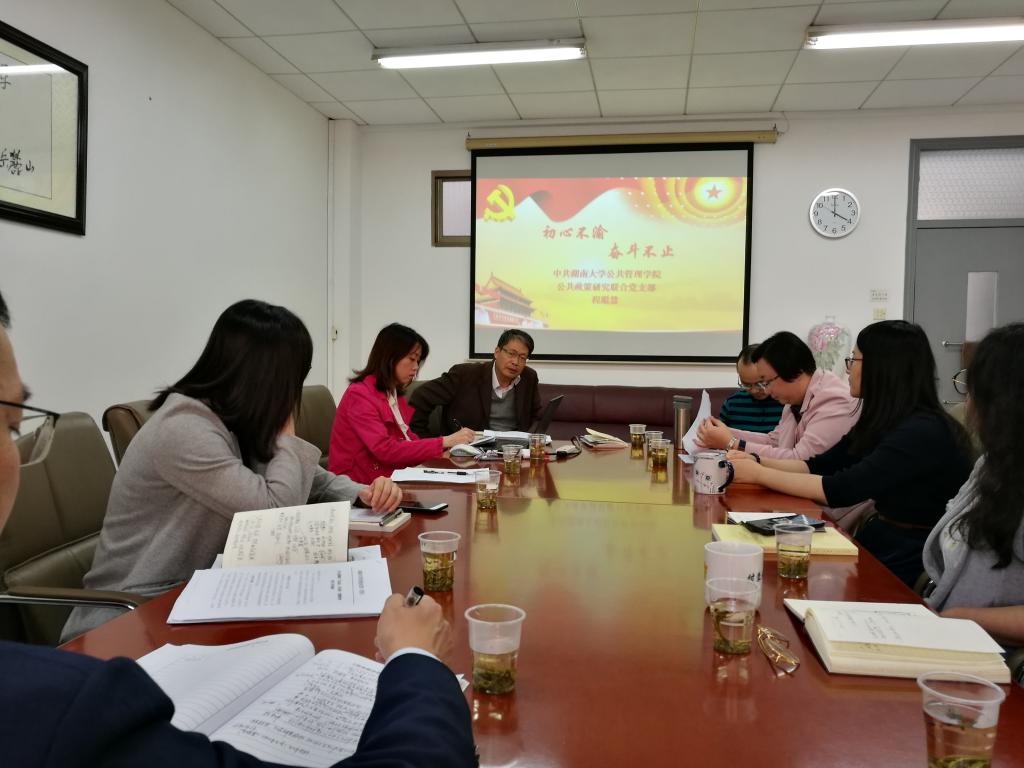公共政策研究联合党支部召开“不忘初心,牢记使命”主题教育党课暨民主生活会。会议传达学习了学校和学院关于“不忘初心,牢记使命”主题教育的相关文件精神,并围绕“守初心、担使命,找差距、抓落实”主题开展了民主生活会。