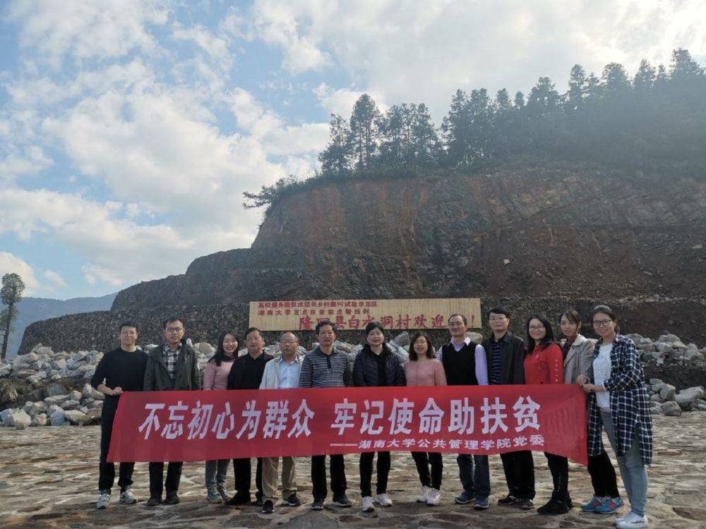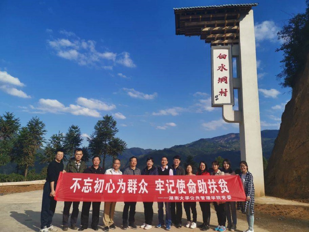党委组织全体班子成员、教工党支部书记和教授党员代表,集体来到学校驻点扶贫村隆回县虎形山瑶族乡白水洞村开展实地调研,通过扶贫项目考察、结对帮扶走访、听取专题报告、交流座谈研讨等方式深入开展“不忘初心、牢记使命”主题教育。