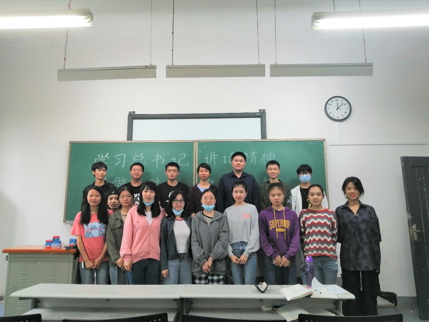 考察时的重要讲话精神,10月21日上午,行政管理1701班于东楼201教室召开主题班会。会议主题为“学习总书记讲话精神,争做新时代优秀青年”,由潘剑主持并作主题发言,行政管理1701班全体成员参加。