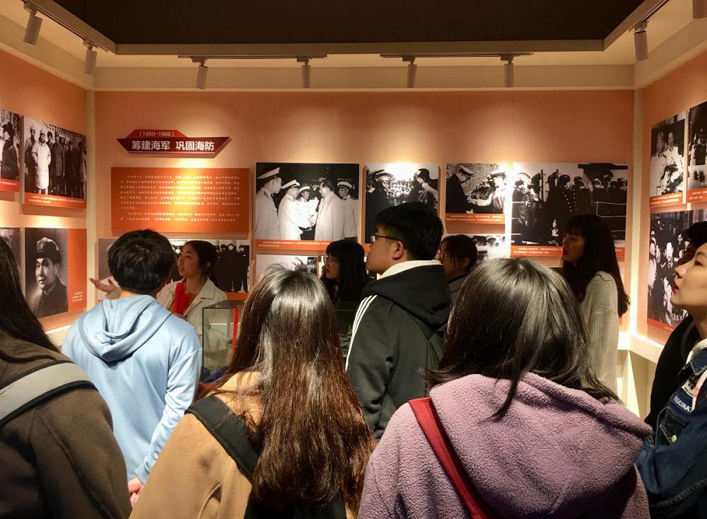 团日活动第一项,陈月同学担任“导游”,带领同学们前往肖劲光故居参观学习,并为同学们讲授肖劲光将军及中国海军的奋斗历史。1950年,肖劲光成为人民海军首任司令员,他立足于中国国情,建军港,修阵地,积极探索人民海军的发展战略,为人民海军的创建和发展殚精竭虑。在肖劲光的带领下,中国海军从起初的白手起家到如今的纵横四海,从近岸到远洋,走过70年峥嵘岁月。故人已不在,但他信仰的光辉仍在照耀同学们的前路。