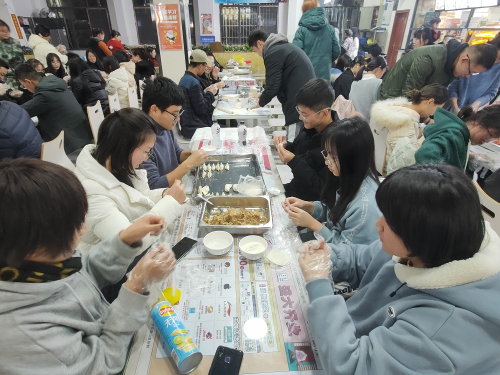 2020级本科生在师生缘餐厅举办“小小饺子香,浓浓冬日情”主题冬至活动。本次活动由2020级年级会组织举办,行政管理2002班班主任万旋老师、迎新团队成员以及2020级全体本科生共同参与。