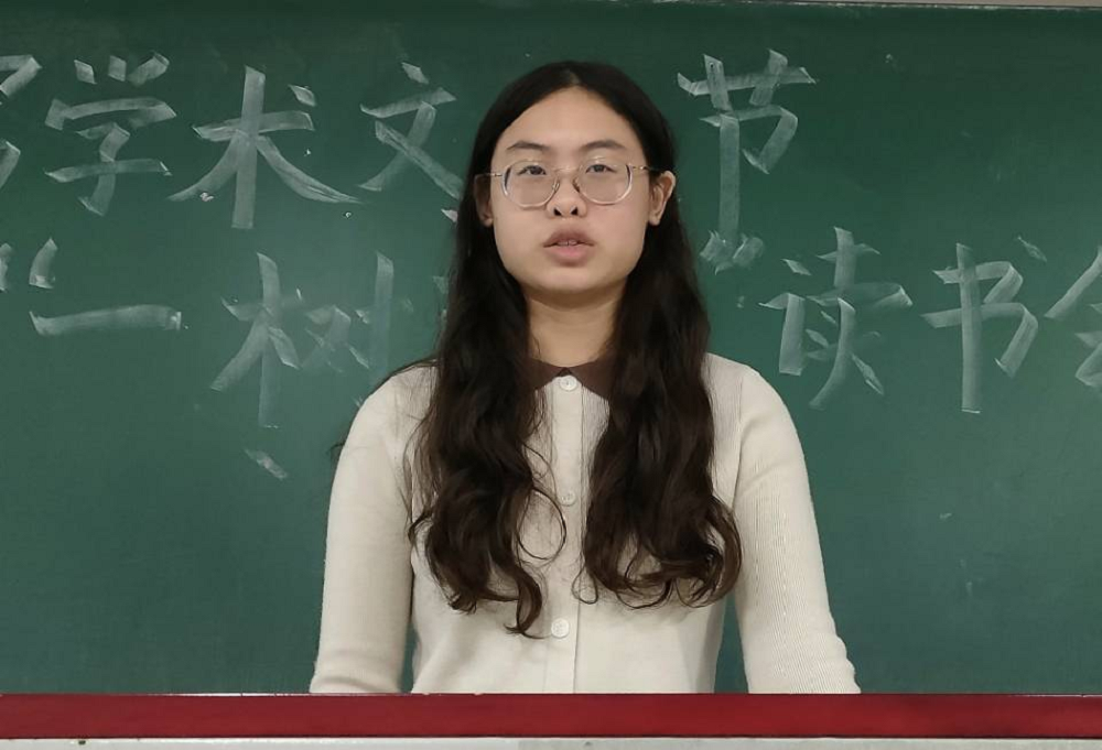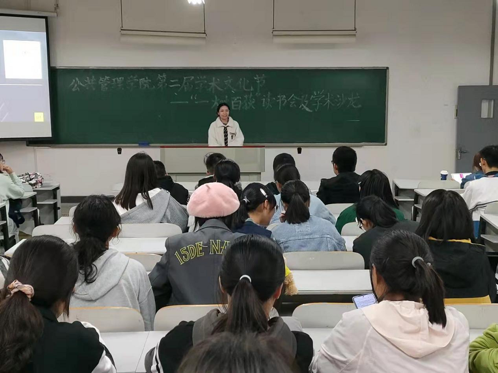2021级全体学生参加了在综合楼114教室举行的第二届学术文化节——“一树百获”读书会及学术沙龙活动。裴聪琳、曾雅琪、王莉珍三位研究生同学依次上台为同学们分享读书体悟。