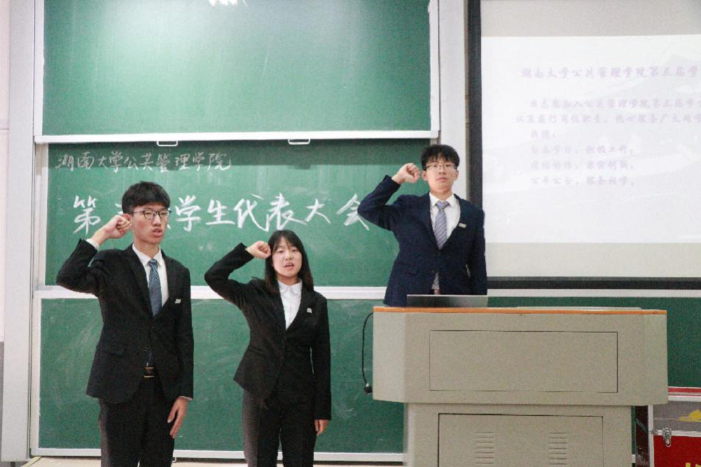 第三届主席团成员。新当选主席团成员上台进行宣誓,表示将牢记学生干部责任,认真履行学生干部使命,热心服务广大同学,做好学院各项工作的排头兵,为学院各项工作的开展做出新的贡献。