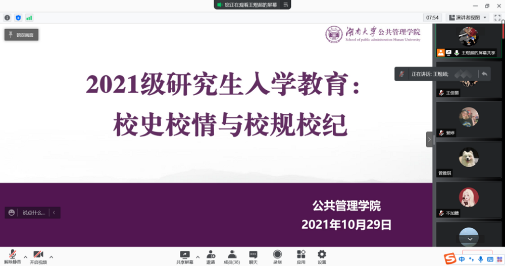 2021级研究生新生入学教育之“校史校情及校纪校规”学习活动通过腾讯会议线上开展。本次学习活动由无码动画