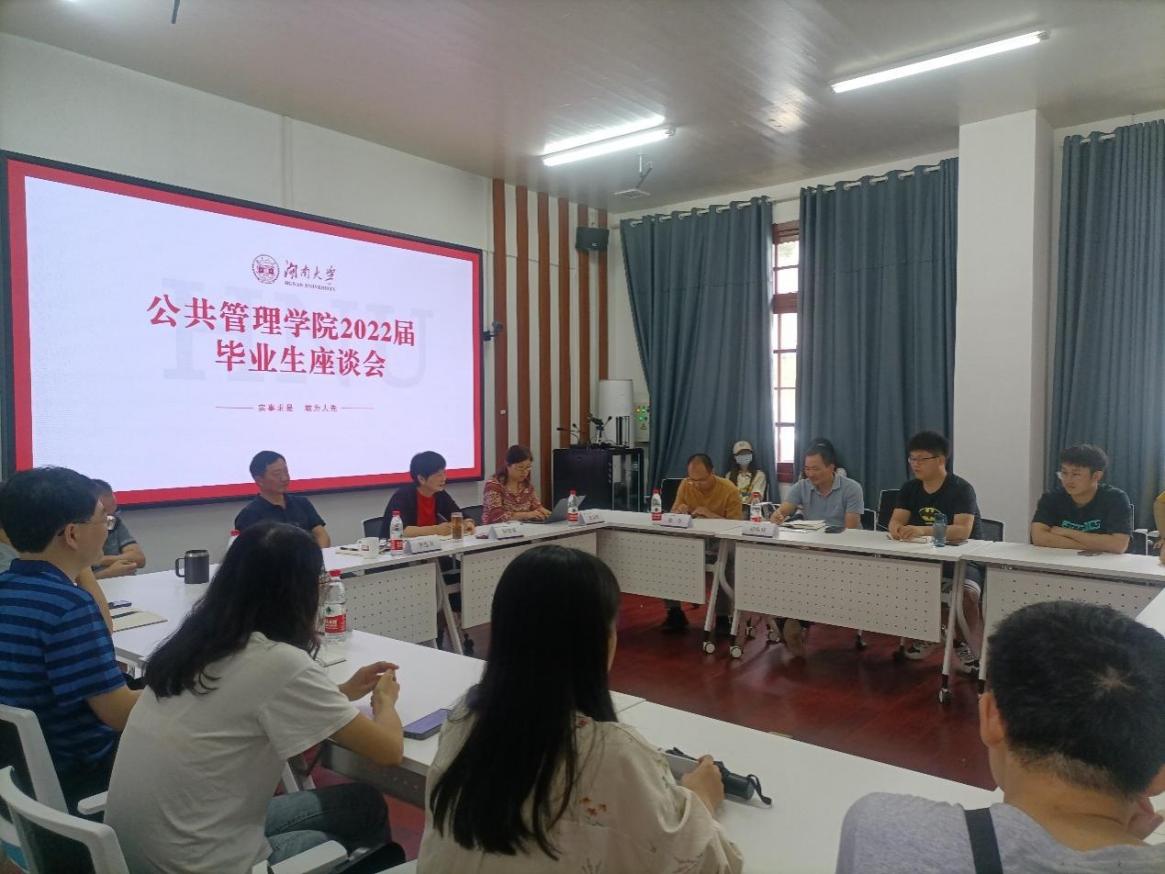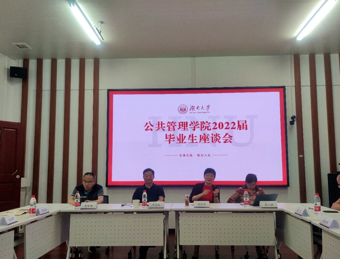 在221室召开2022届毕业生座谈会。院长李连友、院党委书记付蓉芬、院校友会会长李金龙、副院长雷玉琼、副院长谭海波、副院长徐莹、MPA中心主任颜克高出席会议,2022届本研学生代表参加。本次座谈会由院党委副书记杜倩博主持。