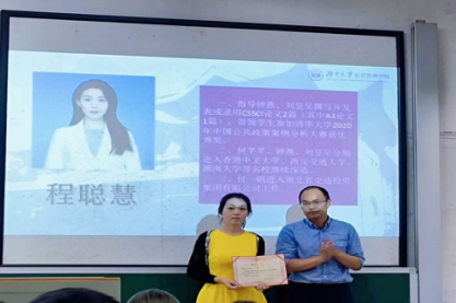 最后,学院对两名优秀导师代表——程聪慧老师、谷浩老师进行表彰,由学院副院长徐莹老师和党委副书记杜倩博老师颁发荣誉证书,并号召大家向其学习。作为导师代表,程聪慧老师向同学们提出了三点建议:付诸于具体行动,做应该做的事;成为自己,善待他人,包容自己与他人的差异;保持健康,相信未来,感受世间美好。