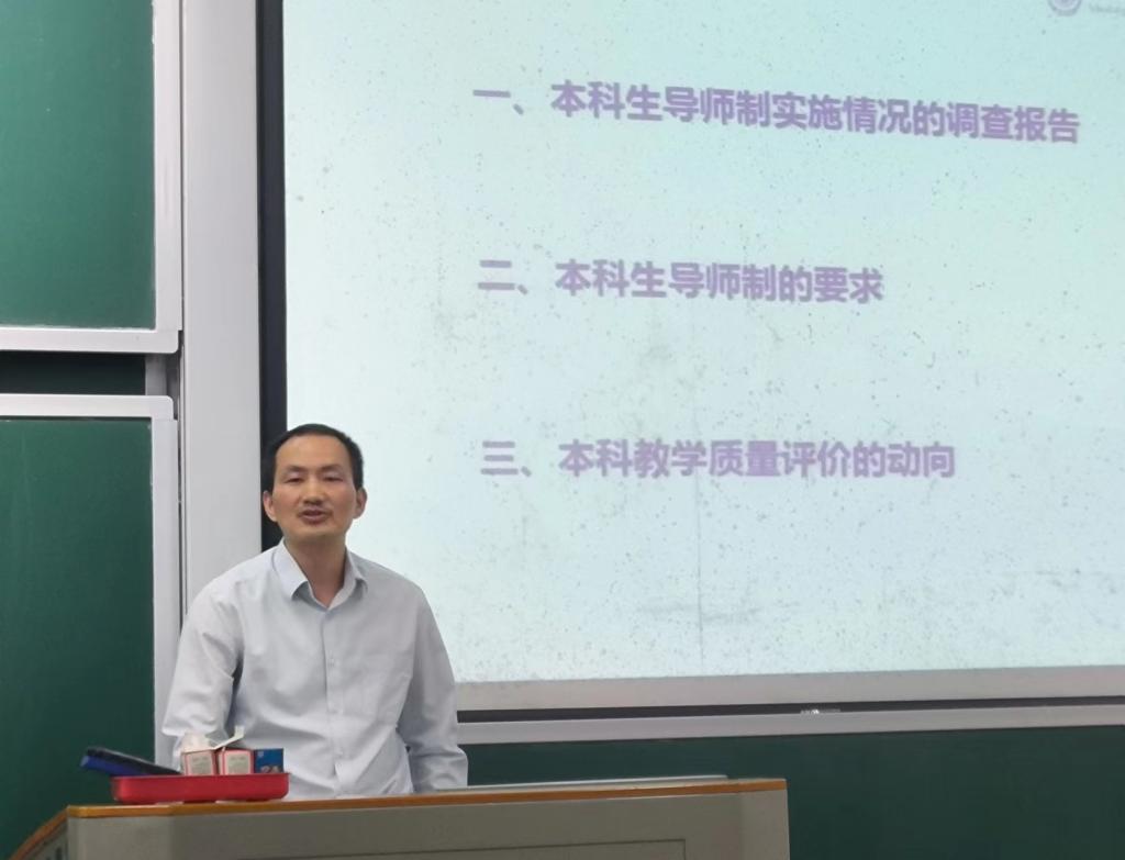 本科生导师制及其实施情况。谭老师从导师与学生之间的交流频率、方式、内容、存在问题和建议等方面向大家详细介绍了本科生导师调查情况,希望导师能够切实履行导师职责,学生能够积极向老师请教。