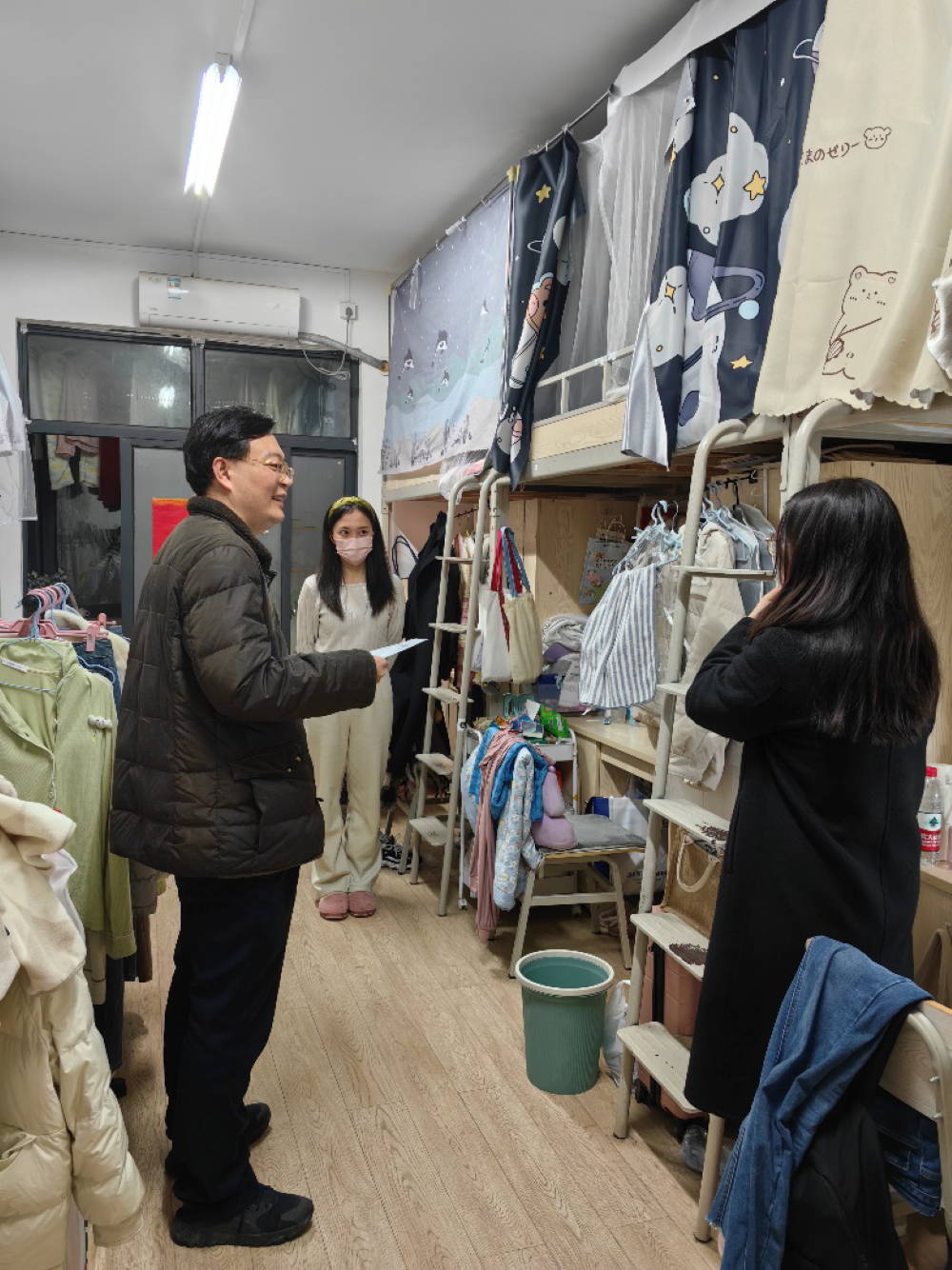 为进一步提高广大学生安全意识和自防自救能力,坚决防范和遏制火灾事故发生,根据学校有关通知要求,无码动画 党委副书记杜倩博、辅导员胡春晖、班主任毛劲歌与伍雪骏老师于3月17日晚带队开展学生宿舍安全检查,针对寝室消防安全、出行安全、防范电信诈骗、食品安全等向同学们进行宣传教育,提示同学们提高警惕,时刻绷紧安全弦。