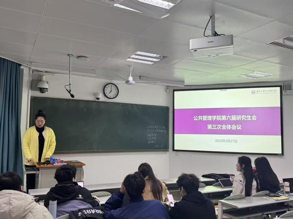 第六届研究生会第三次全体会议在水教310顺利举行。参会成员包括第六届主席团成员及研究生会全体成员。