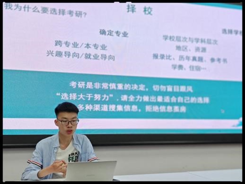 5月7日晚,无码动画 考研经验分享会在学院221教室举行。沈泽原与陈瑶两位学长以亲身经历为指导,用平实而深刻的话语,帮助同学们明确考研方向、熟悉备考流程、解答备考疑惑,体现了朋辈互助的示范和引领作用。