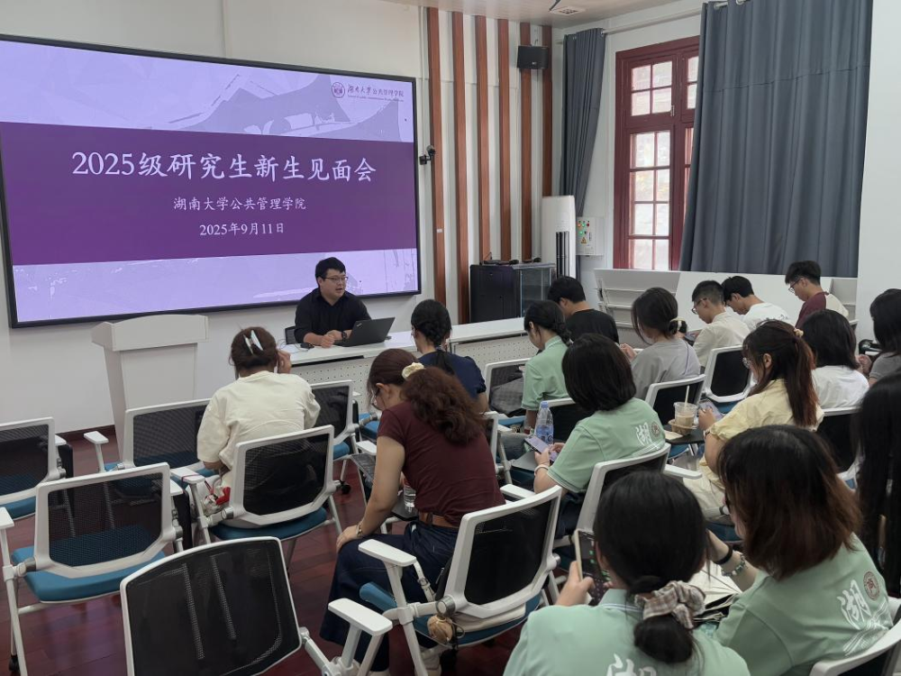 在学院221教室举行了2025级硕士研究生新生见面会。学院党委副书记、纪委书记杜倩博,辅导员胡春晖和2025级全体硕士研究生参会。